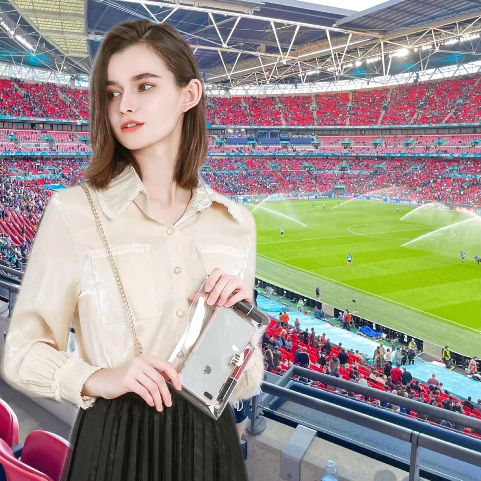 - 【Stadium Approved】YueBags Small Clear Purse is simple and generous design, absolutely attracts anyone's eyeballs. This clear crossbody bag is made of PVC material with size 8.3x0.9x5.9 inch, which is perfect for sports events, concerts, gamedays, wedding, evening party, prom, etc. Make it easier for fans to gain access to all stadiums. Perfect bag for sports events or venues requiring a clear bag