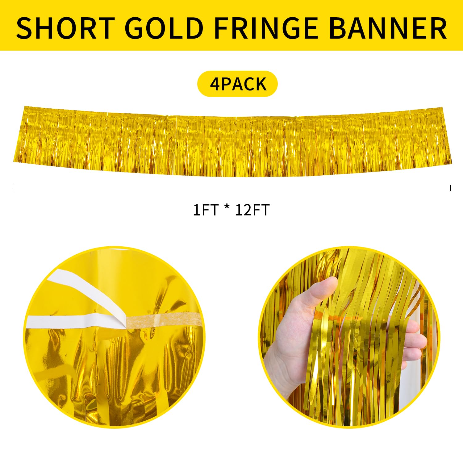 - Easy Use: Simply remove the adhesive tape protective film and apply this gold tinsel foil fringe garland on walls, parade floats, tables - anywhere you desire to illuminate your party atmosphere! Please avoid sticking the fringe banner on uneven or stained walls to prevent detachment.