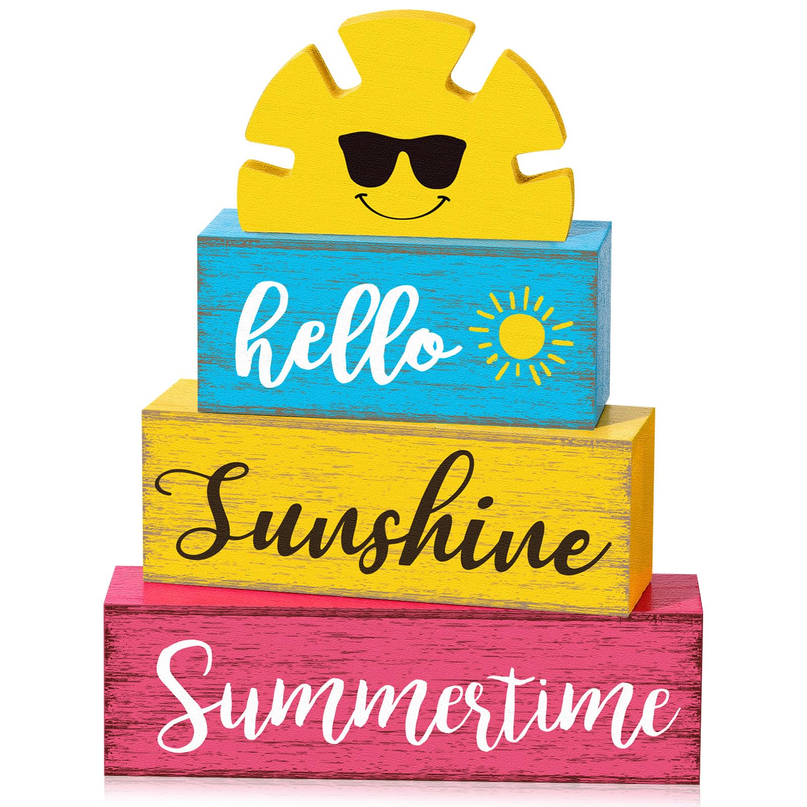 Yuntau Summer Table Decor Hello Sunshine Wooden Block Sign Farmhouse Summertime Beach Tiered Tray Decor Rustic Table Centerpieces Summer Decorations for Home Desk Shelf Mantle Office Decorations