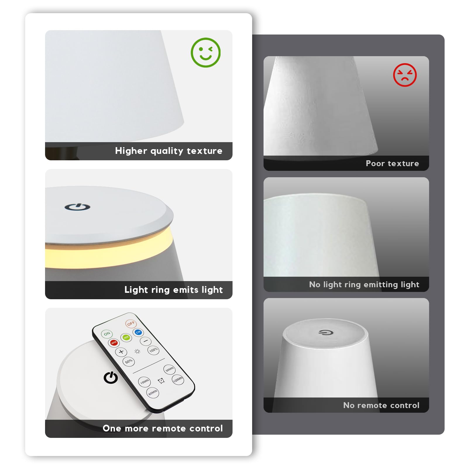 - Dual Control Modes: Touch switch for mode切换(light/night light), long press for brightness adjustment; compatible with remote control.
