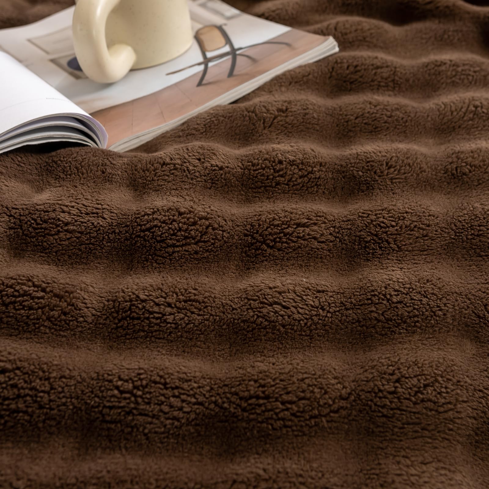YUSOKI Faux Fur Throw Blanket with 3D Bubbles Super Soft Fuzzy Cozy Thick Blanket for Couch Chair Sofa Gift Home Décor(Brown,50 * 60inches)