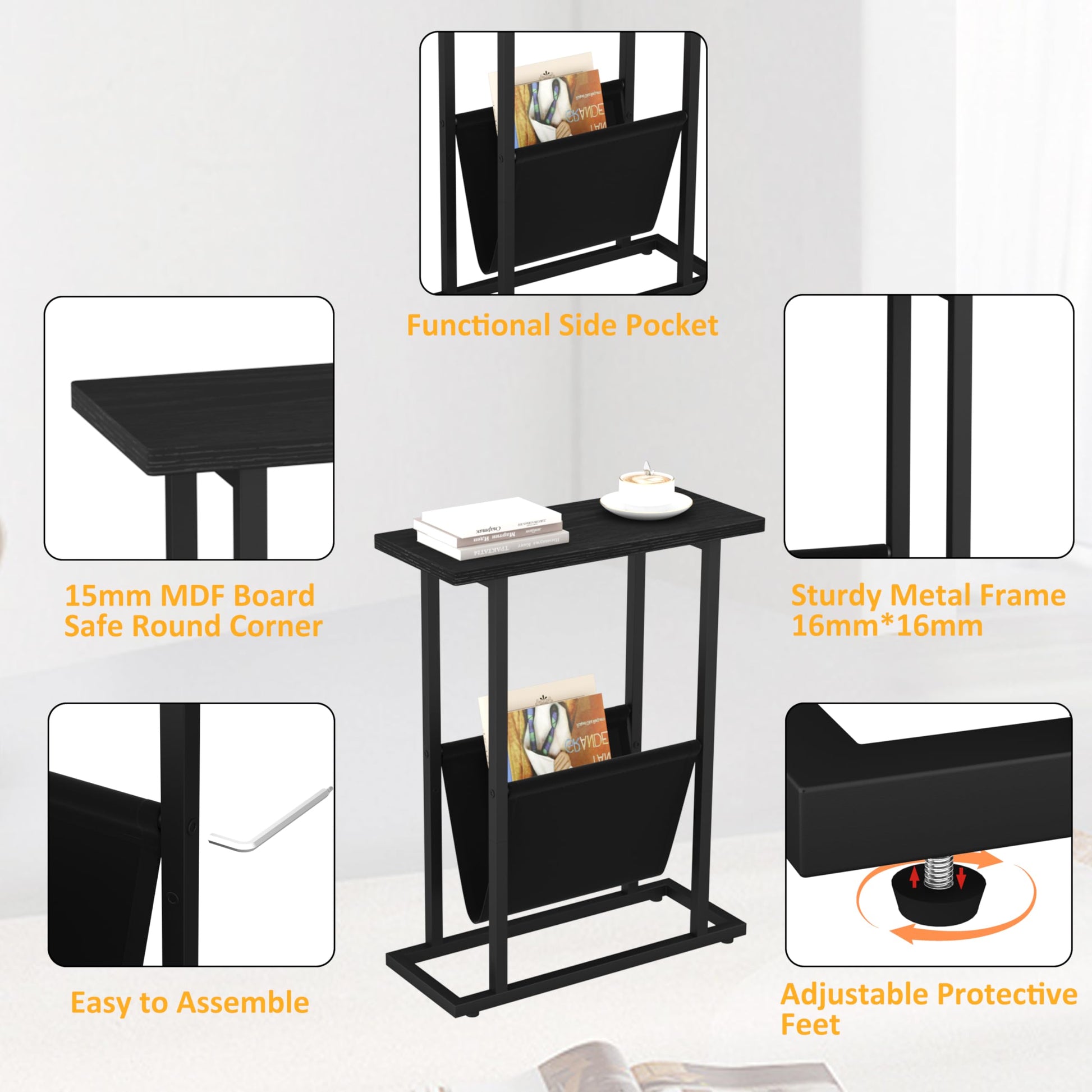 - Small Narrow End Table: This different side table was made of MDF board + black matte paint metal feet + cloth bag + adjustable foot pad, and it is perfect for small or narrow space.