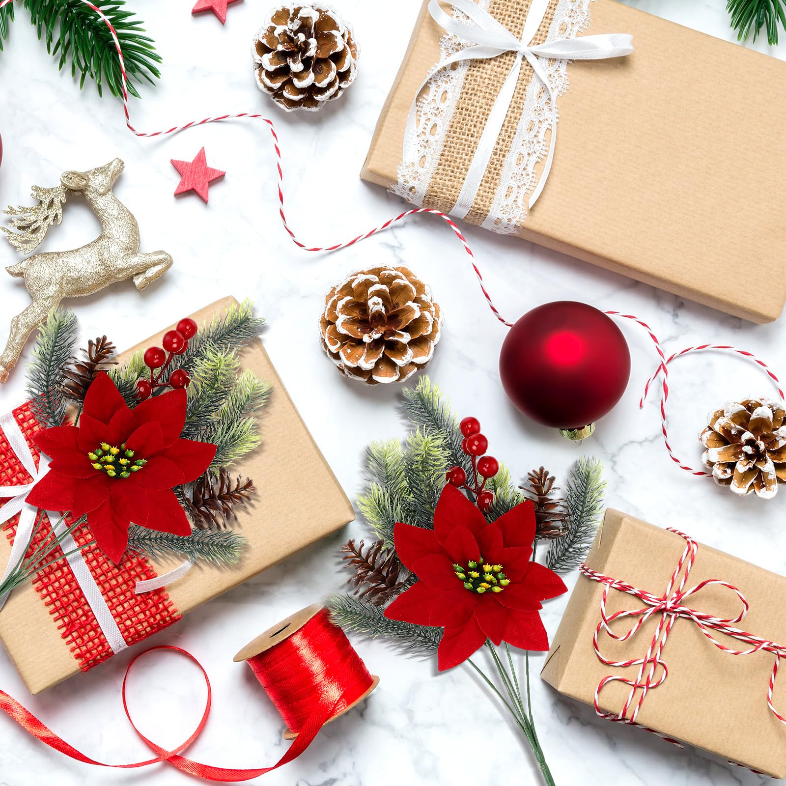 - Quality Material: these Christmas poinsettia flowers are mainly made of quality plastic and velvet cloth materials, decorated with red berries, pine cones and green pine branches, reliable and reusable, sturdy and lightweight, not easy to break or fade, which can serve you for a long time, and you can use them with confidence