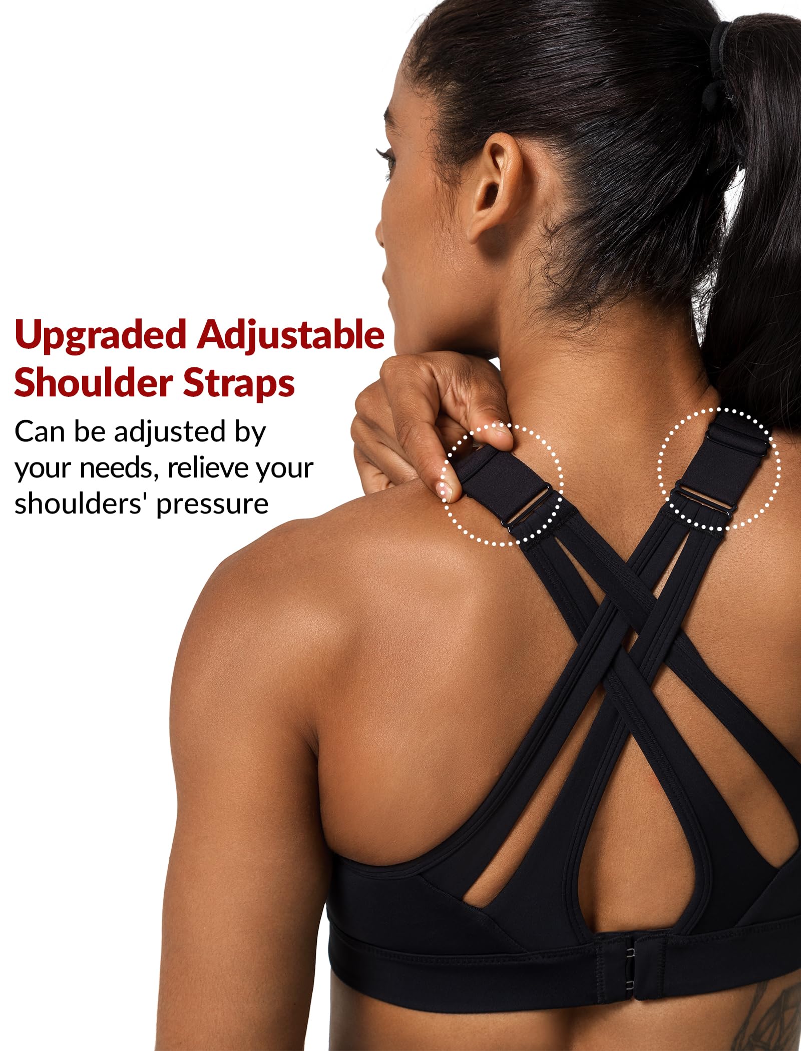 Yvette Sports Bra High Impact Adjustable Criss Cross Back, Full Support for Large Bust No Bounce,Black,S