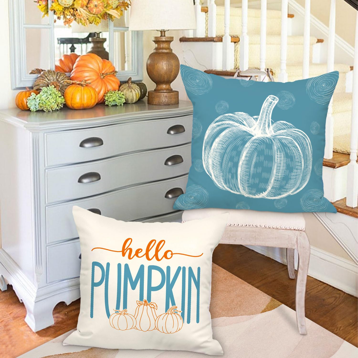 - Set of 4 18x18 Decorative Fall Pillowcases with clear prints pattern to help you quickly change up your fall decorations, perfect for fall harvest Thanksgiving Halloween decorations