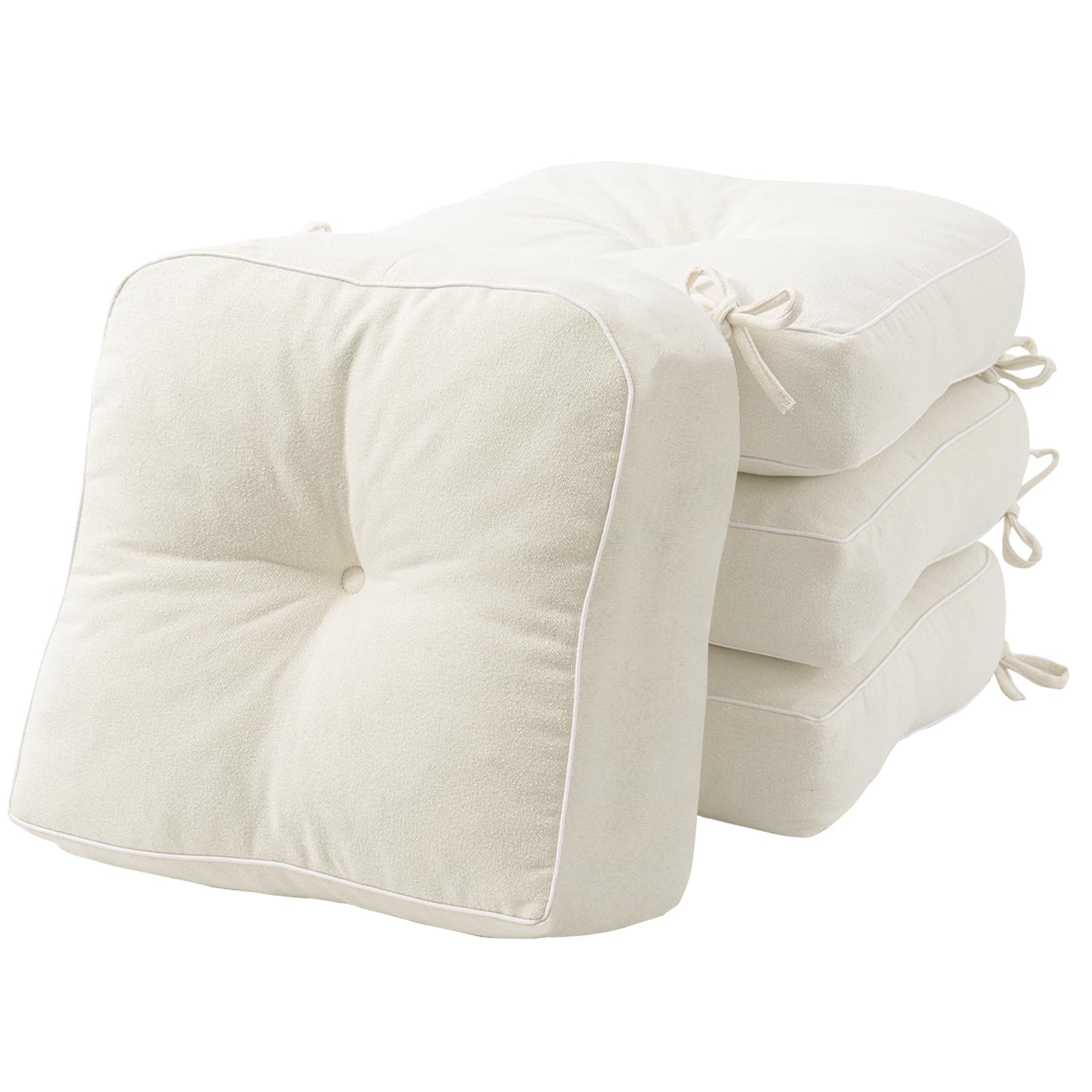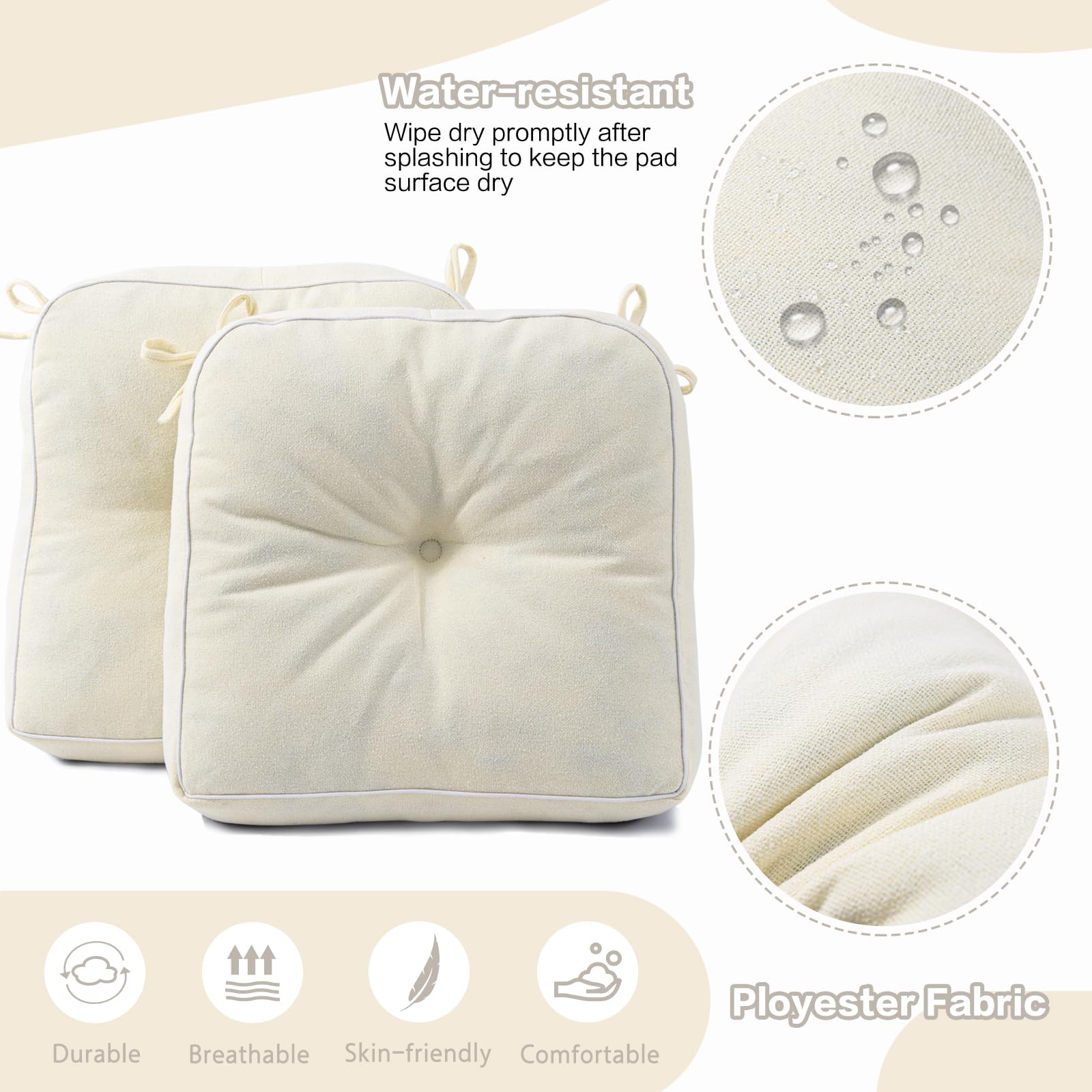 YZ HOME 4 Pack of Chair Cushions for Dining Chairs, Kitchen Chair Pads with Shredded Blue Memory Foam Filling, Indoor Outdoor Chair Seat Cushions with Ties, 16.5 x 16.5 x 5 Inches, Ivory