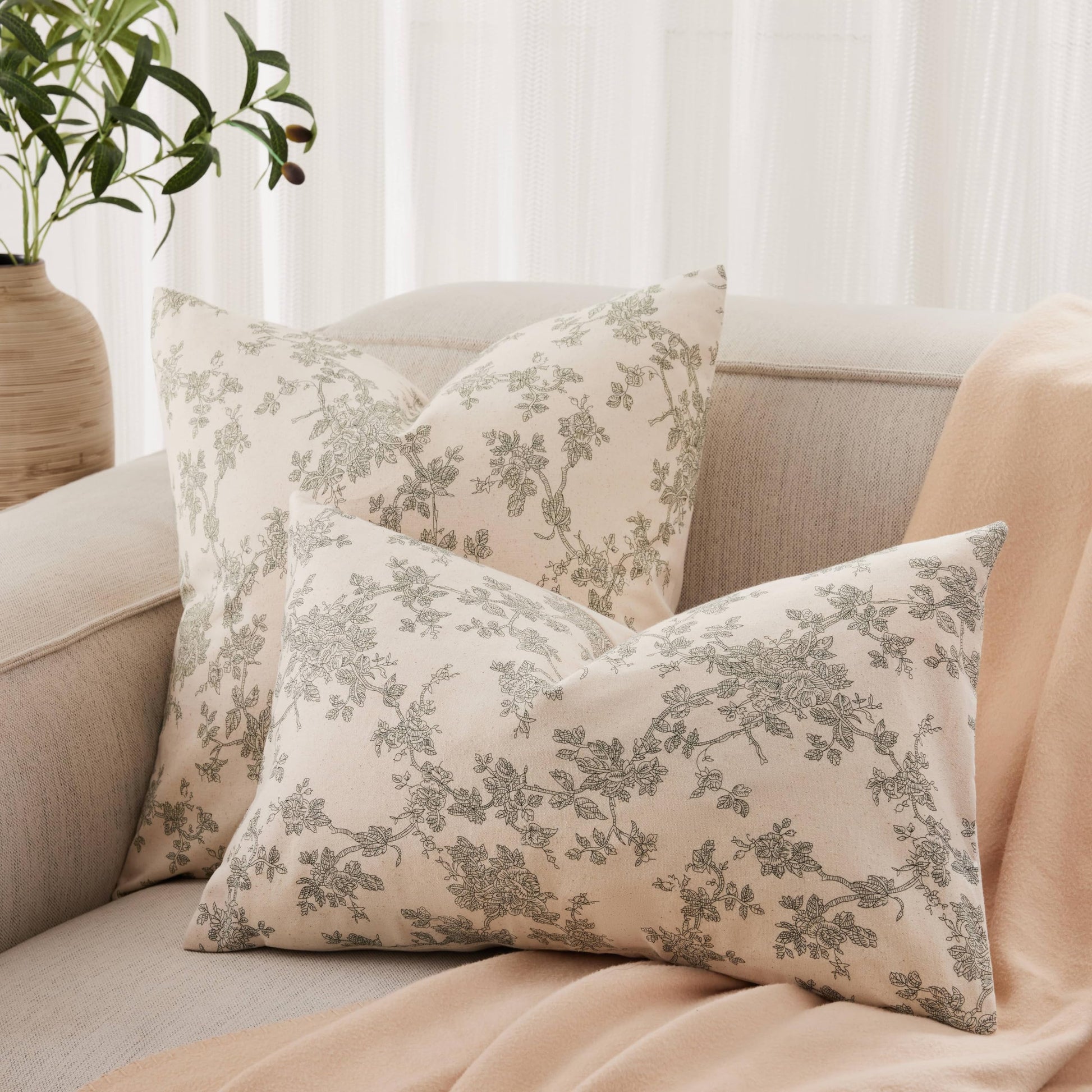 YZJZEDS 100% Cotton French Pastoral Lumbar Throw Pillow Covers Set of 2, 12x20 Inch Green Farmhouse Decorative Cushion Covers for Sofa Bed Living Room Home Decor