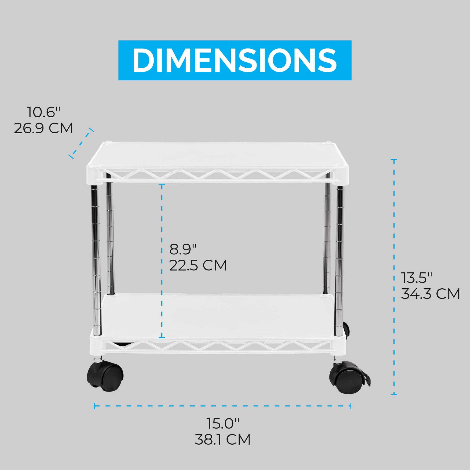 ZBRANDS Printer Stand, Mini, White, 15" x 10.6", Portable Electronic Device Stand for Small Spaces, 40lbs Capacity, Rolling Cart with Wheels, Home Printer Stand, Copier Stand