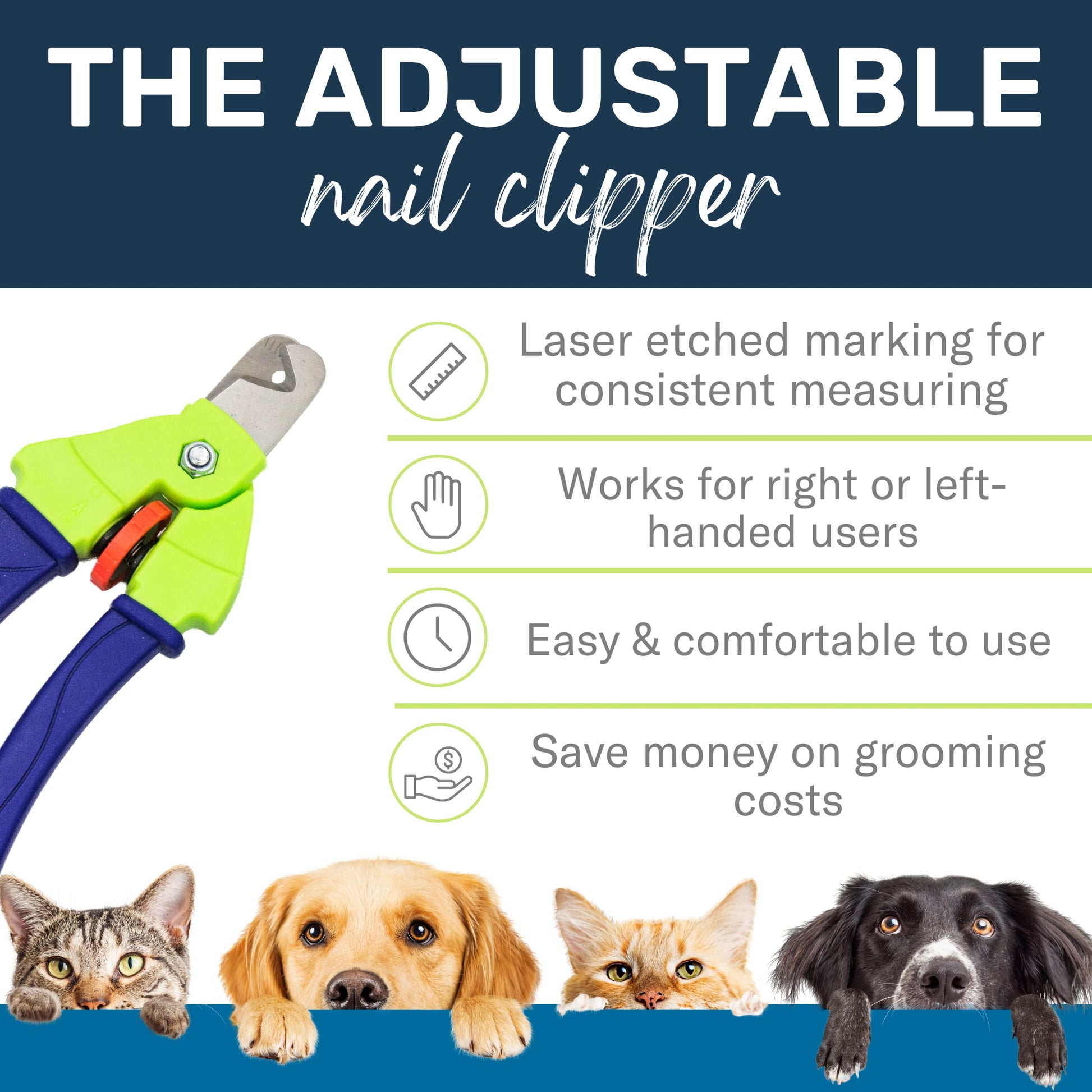 - WORRY-FREE NAIL CLIPPING – The unique adjustable blade limits the amount of nail being clipped. This reduces the risk of overcutting nails and hurting your pet’s sensitive quick. No stress and no injury nail trimming for you and your pet. It's a must-have item for safe at-home nail trimming.