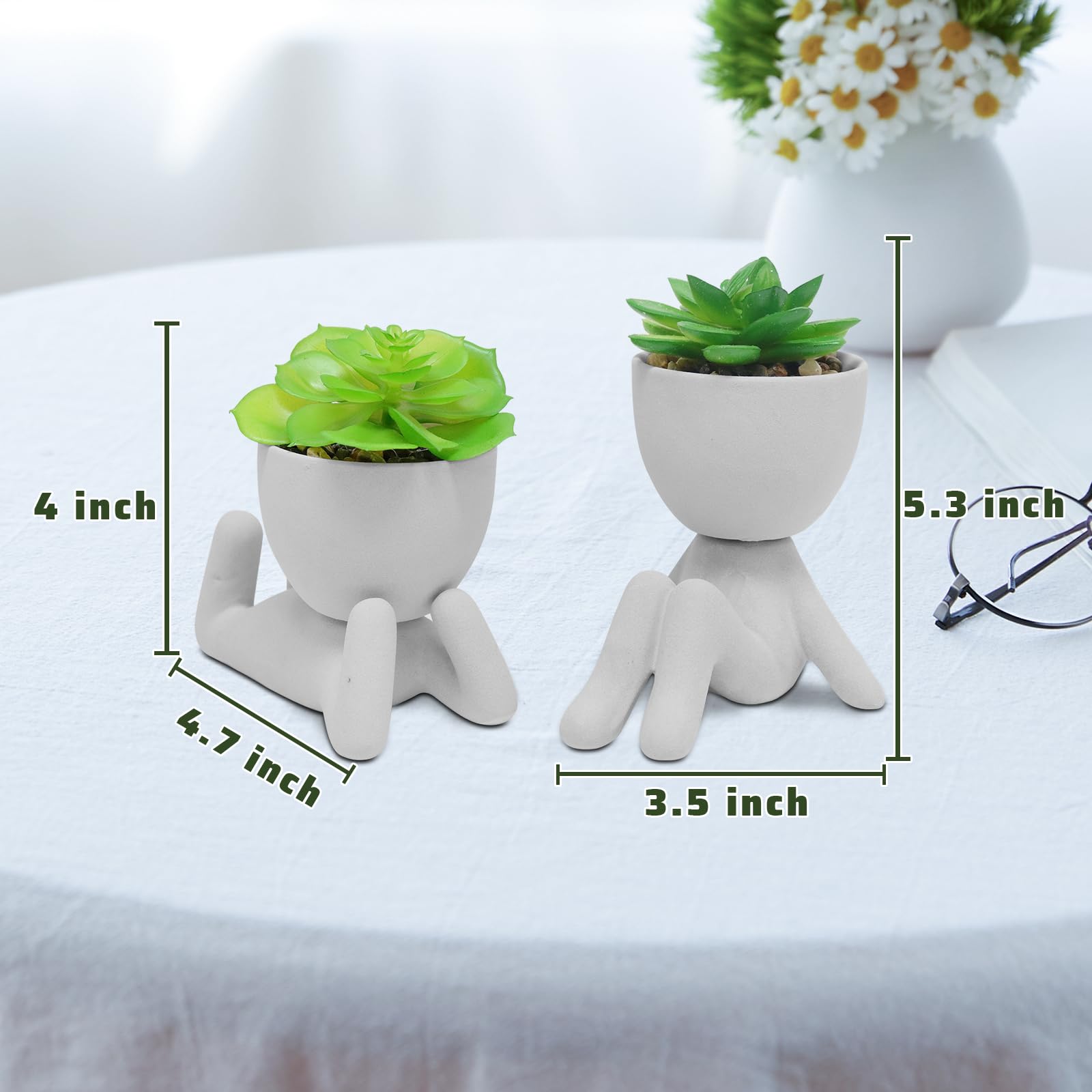 Zerzsy 2PCS Cute Artificial Succulent Plants with Creative Human Shaped Pots, Desk Decoration Artificial Plants Indoor for Home and Office Decor(Cement Gray)