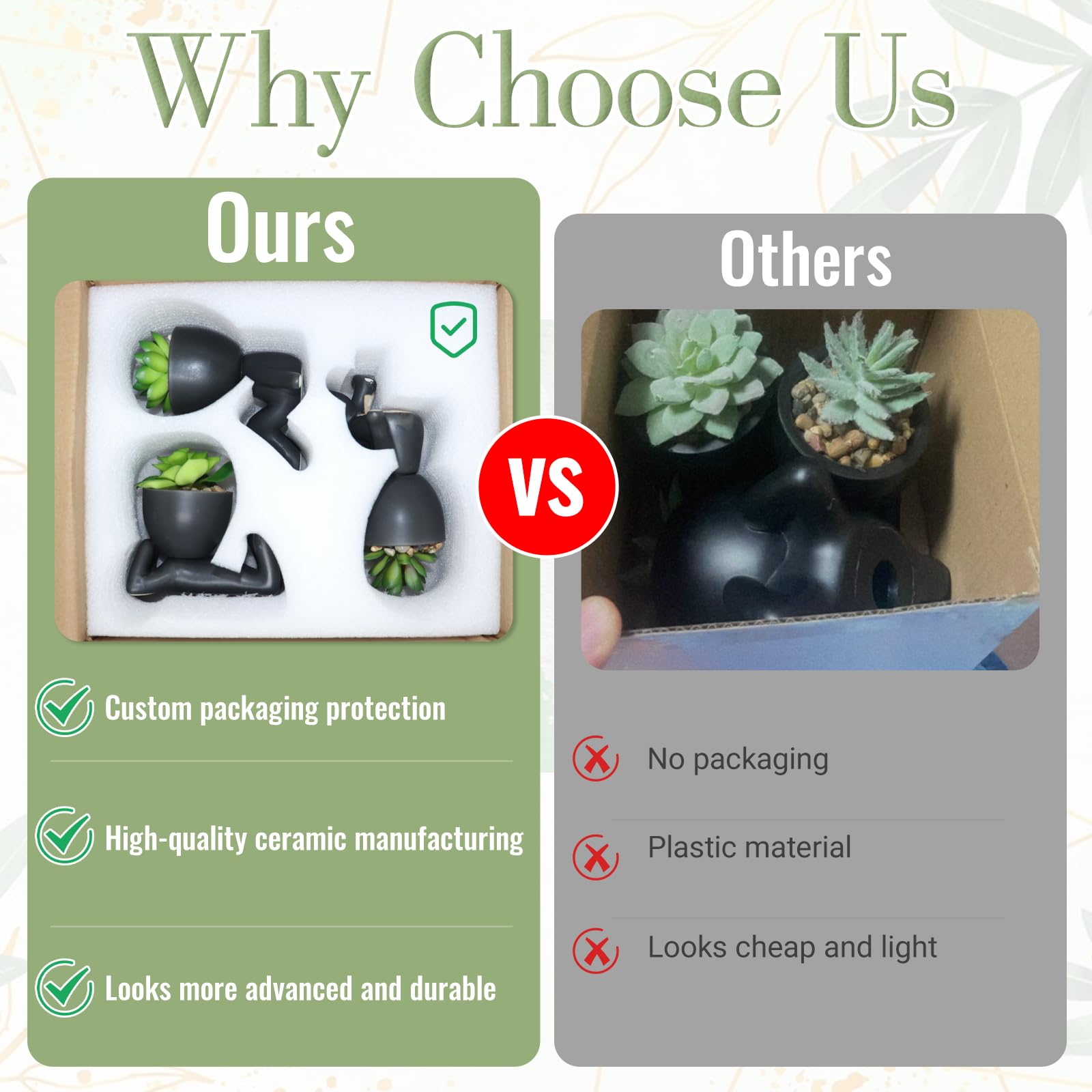 - 🎄🎄【Fake Plant Pot Size】 The humanoid fake plant pot is made of high-quality ceramic frosted composition. Maximum height is 5.3 ', maximum width is 4.7 '.