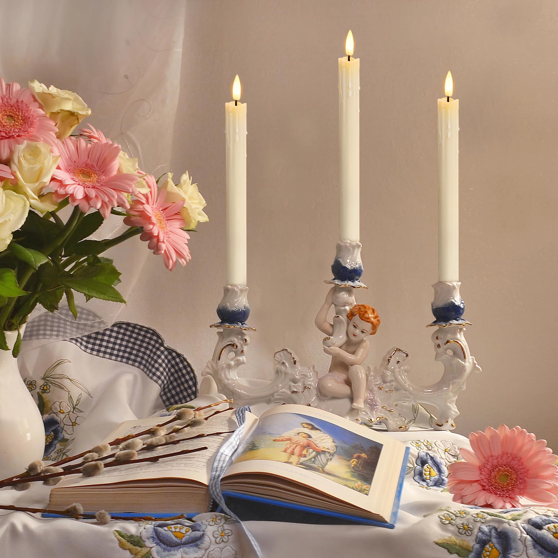 Zevanor Rechargeable Flameless Timer Remote Taper Candles, 2pcs 0.86" x10" LED Flickering Dripping Wax Window Tall Fake Ivory Plastic Candlesticks(USB Charging Cable Included)