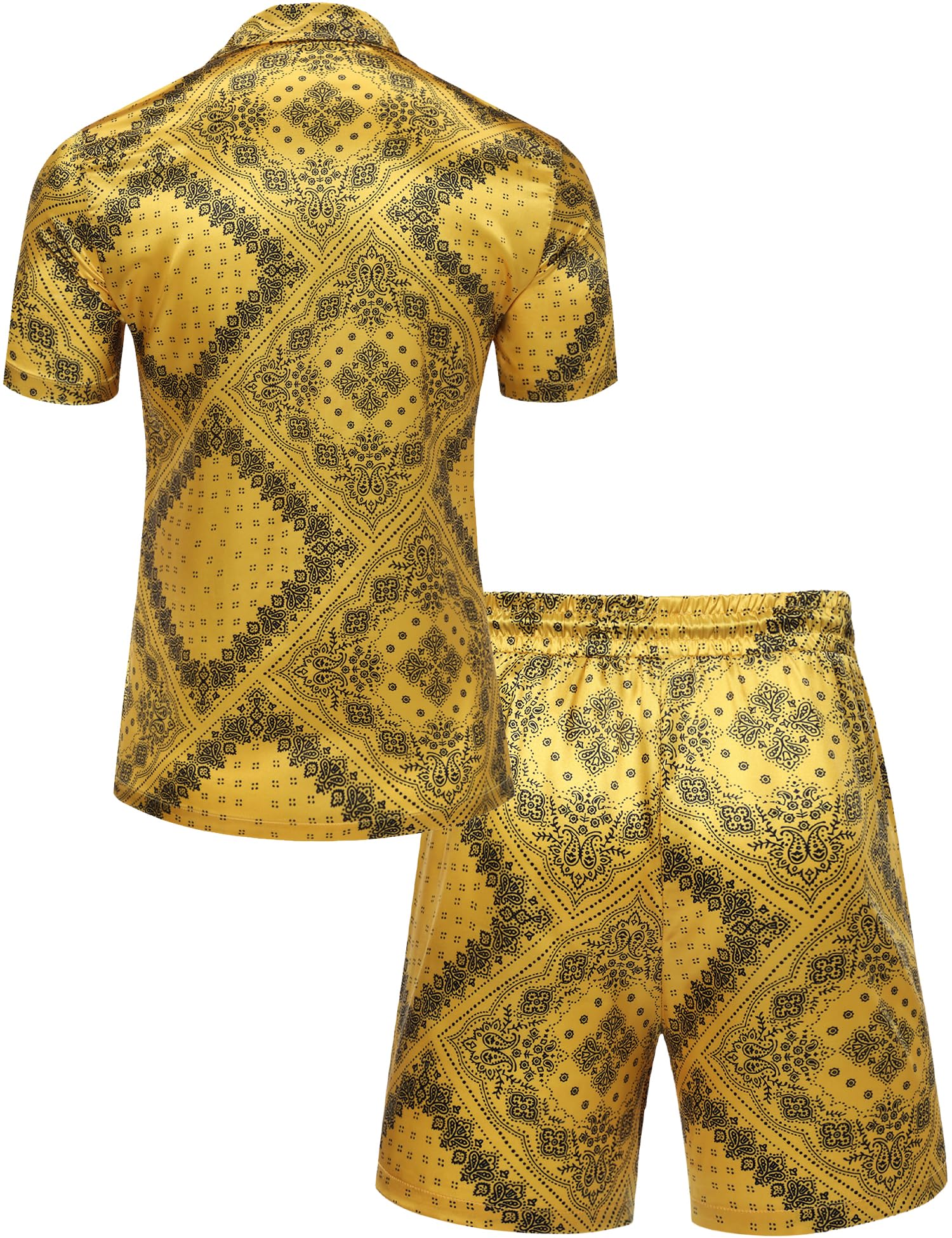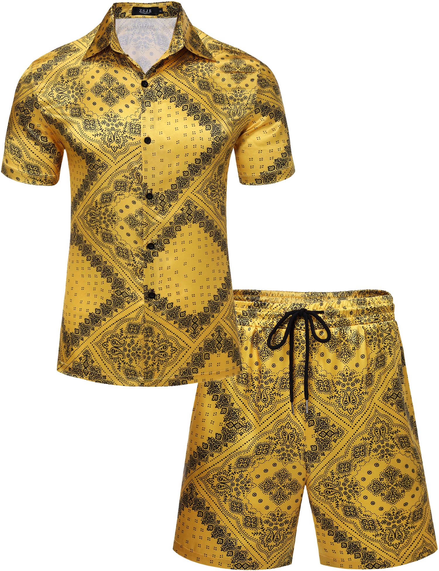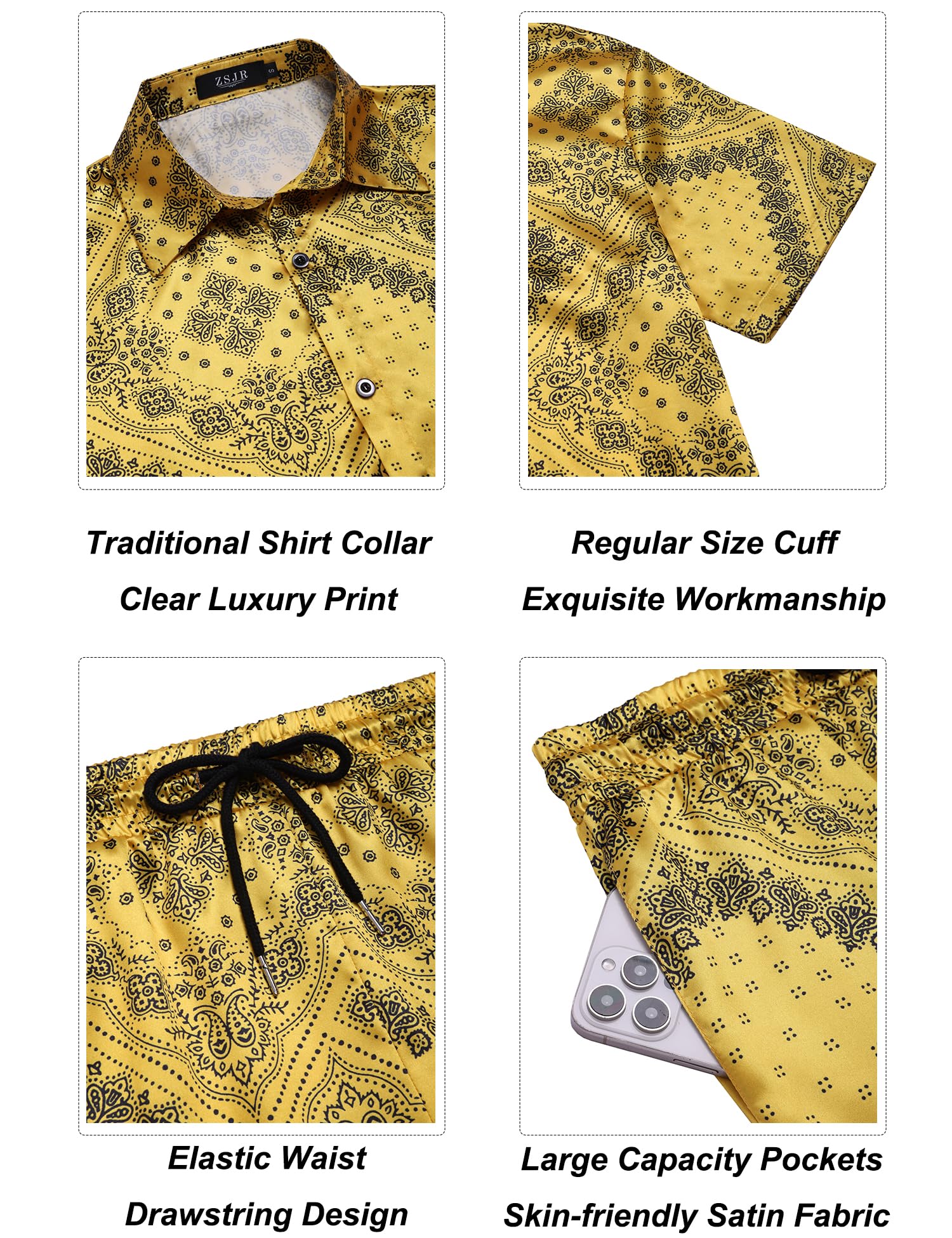 ZSJR Mens Hawaiian Shirt Sets Satin Silk Casual Button Down Shirts 2 Piece Luxury Summer Beach Outfits for Men